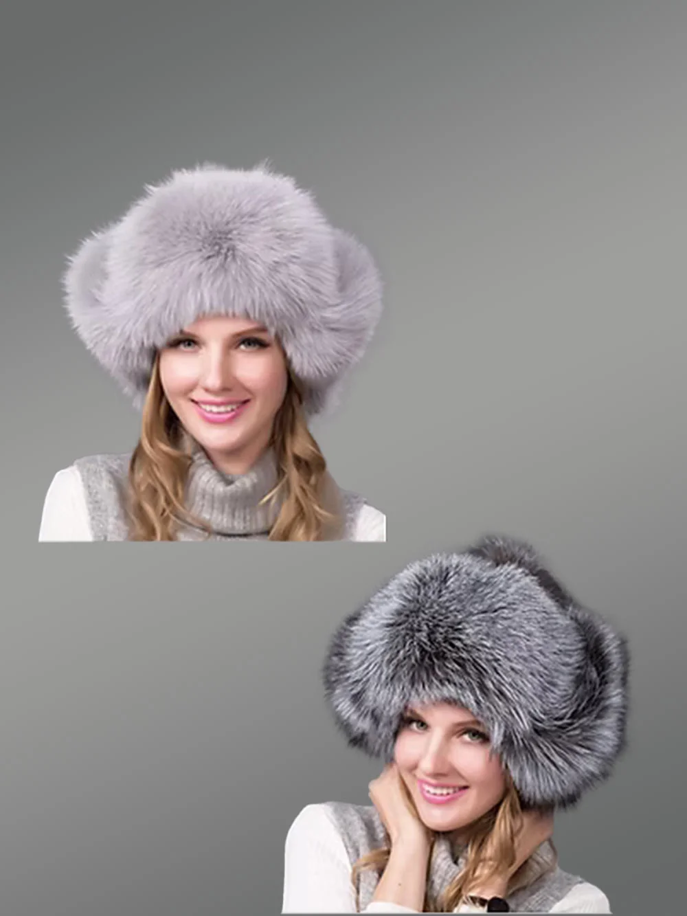 Womens Fox Fur Hat with Pompom Tails–Trendy & Elegant with Cozy Feel