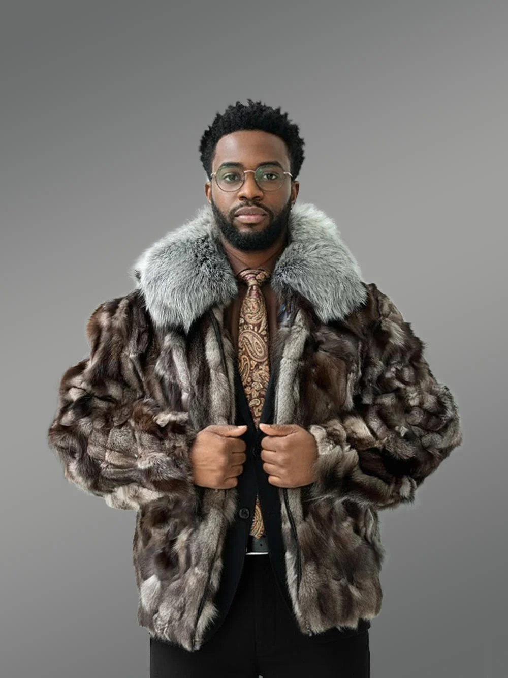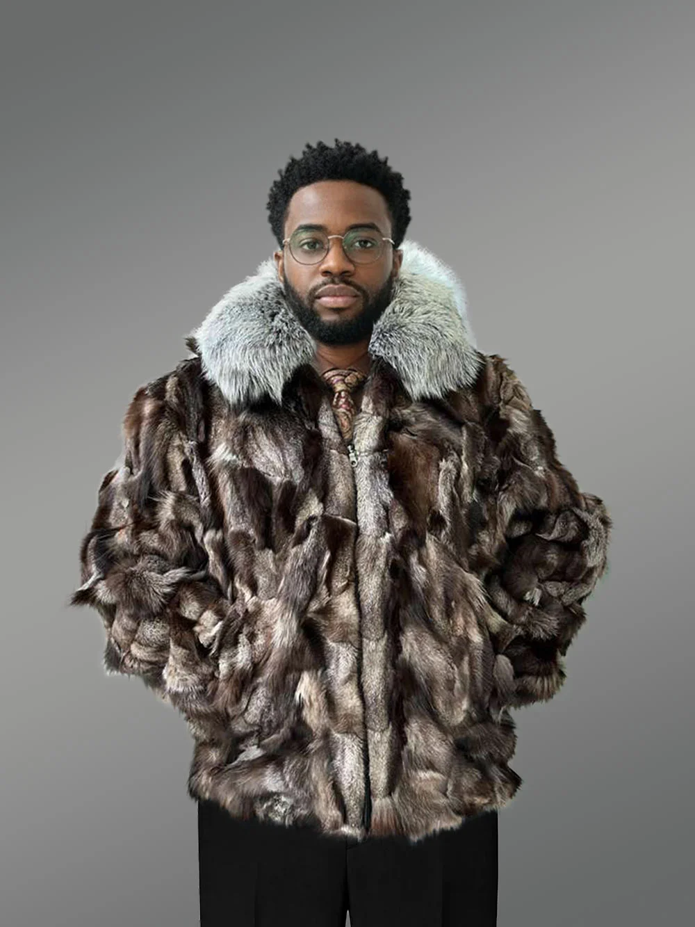 Men’s Stylish Blue Silver Fox Bomber Jacket